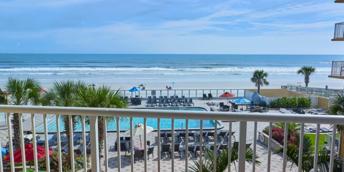 Our oceanfront Resort hotel in Daytona Beach offers visitors a wonderful vacation experience which includes spacious room or suite accommodations, all with private balconies or patios providing stunning ocean views and a beautiful sunrise.