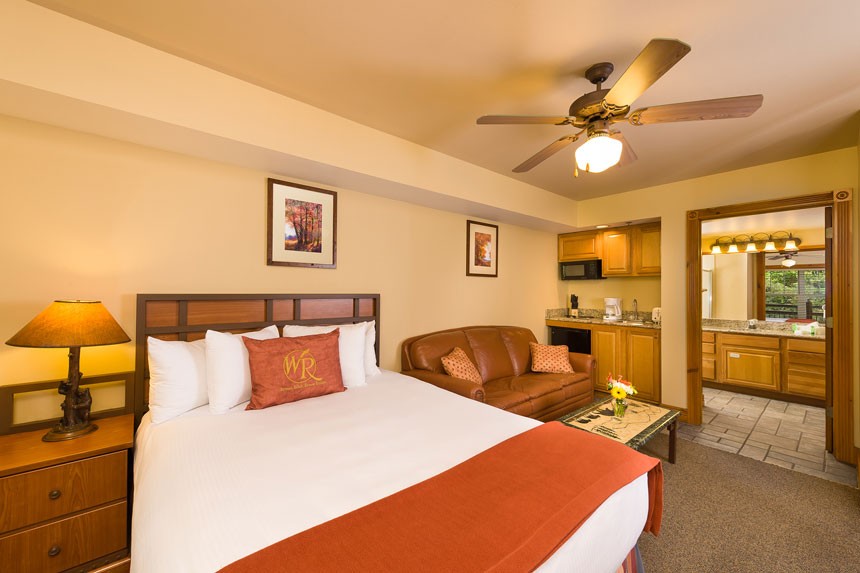 Larger than a typical hotel room, the Studio Villa at Westgate Smoky Mountain Resort & Water Park in Gatlinburg, Tennessee, offers four guests spacious accommodations for a memorable Smoky Mountain vacation.